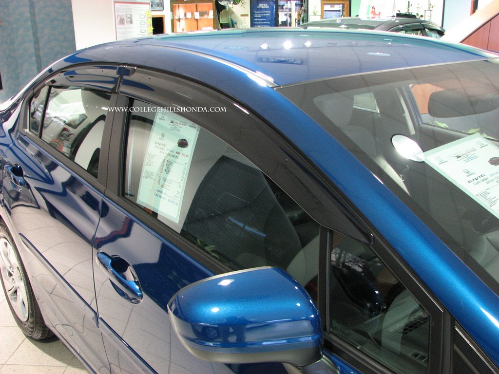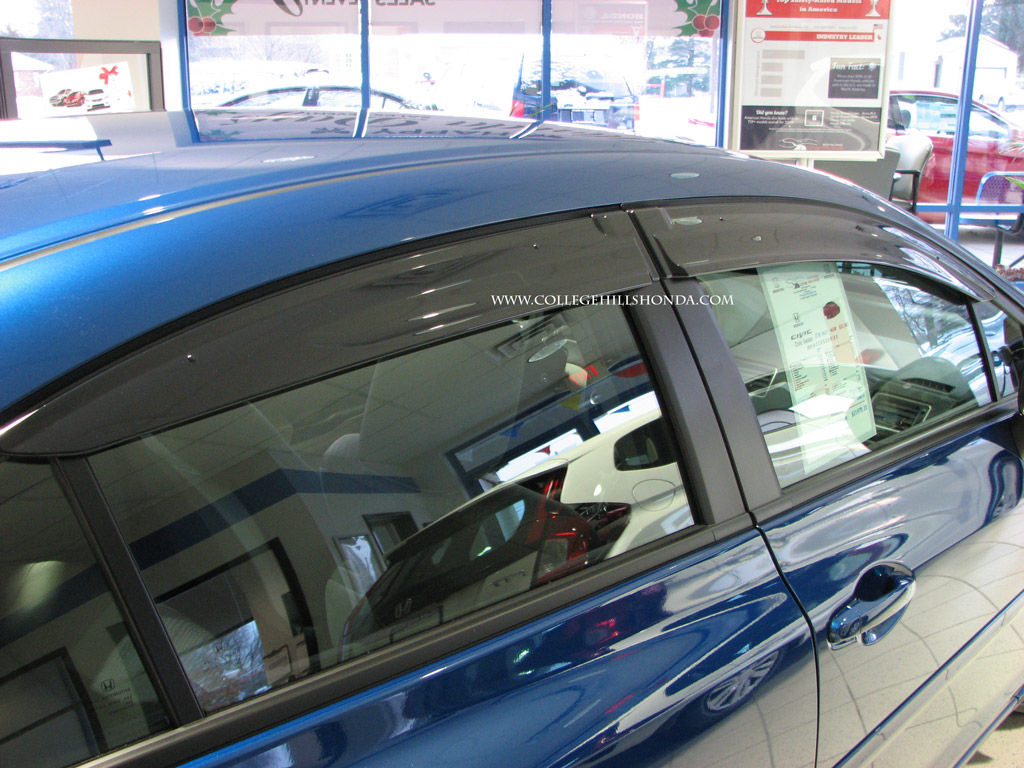 Visors provide fresh air, reduce heat build-up, minimize window fogging, cut down on glare and help keep the rain out. Custom designed for the Civic sedan. Ships at a higher rate due to package dimensions.