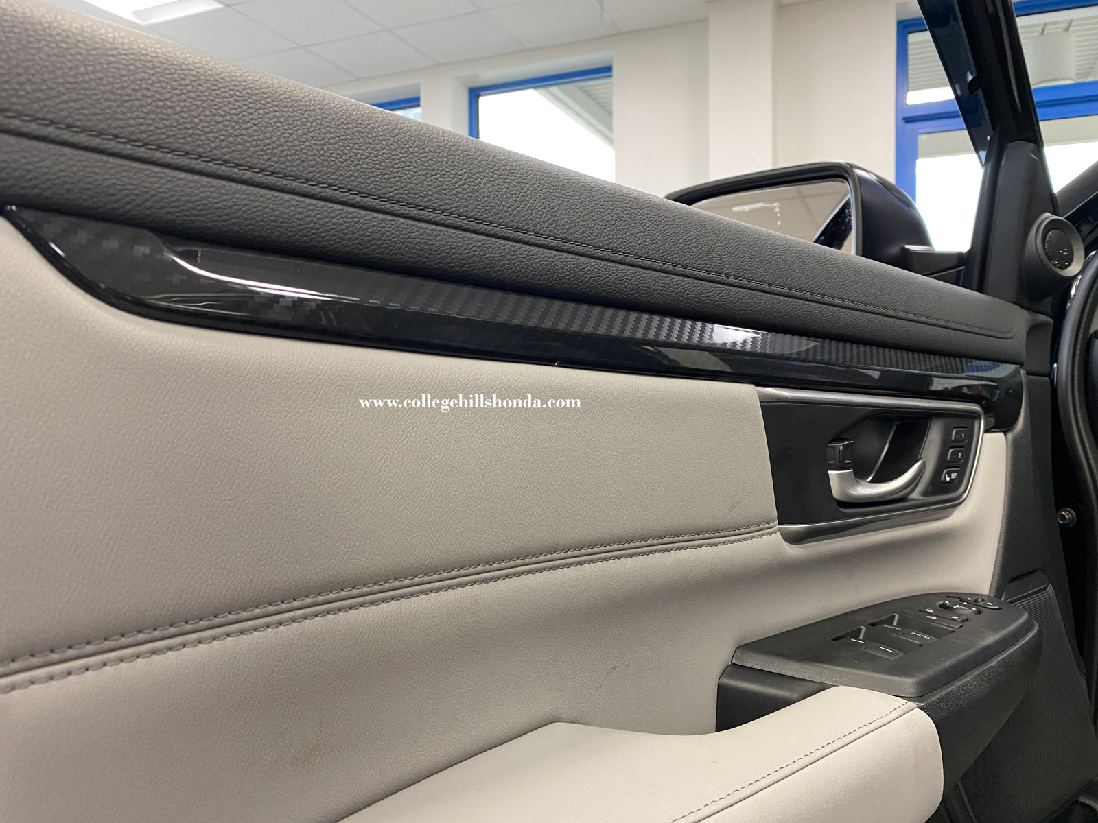 Includes a carbon fiber look pattern and CR-V logo on the dash piece. Logo illuminates blue when lights are turned on. 6-piece kit.