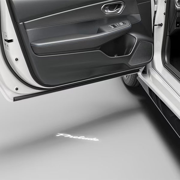 Upon opening your vehicle’s door, our Logo Pattern Projector illuminates the ground for added visibility. LED lights project the project the Prelude logo. Provides added visibility while also enhancing the stylish look of your Prelude. This photo has been digitally enhanced to show the light and logo more clearly. Includes left and right door projectors.