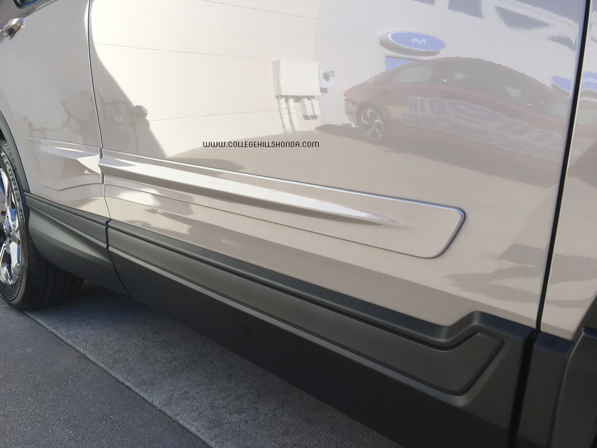 These moldings look great and protect the CR-V from door dings. Each molding is injected molded for dimensional stability, improved appearance and excellent resistance to scratches and dings. The moldings are factory color-matched to maintain the "original equipment" look. NOTE: Be sure to check your vehicle color code to make sure the correct body side moldings are ordered.