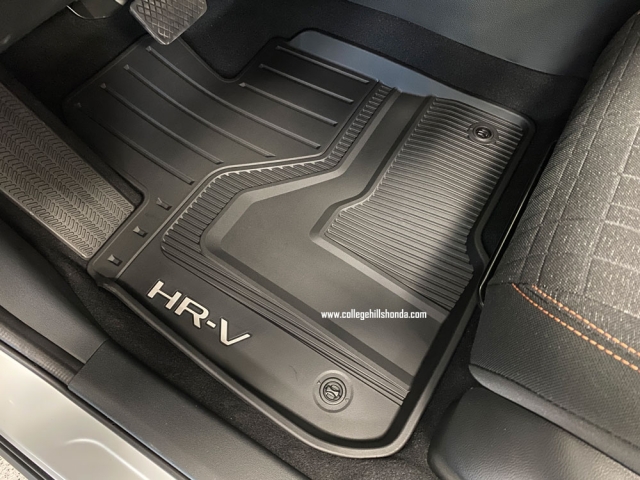 These mats are made of tough thermoplastic to provide years of protection and can be easily cleaned with soap and water. Ridges on the mats help trap dirt, keeping it away from the carpet of the vehicle. Designed specifically for the HR-V, the shape of the mat covers all the important areas, while a ribbed backing helps keep the mats firmly in place. The molded gray HR-V logo provides a custom look. 3 mats are included, 2 for the front seat and 1 long mat for the rear. If you would like further protection add a cargo tray. (sold separately)