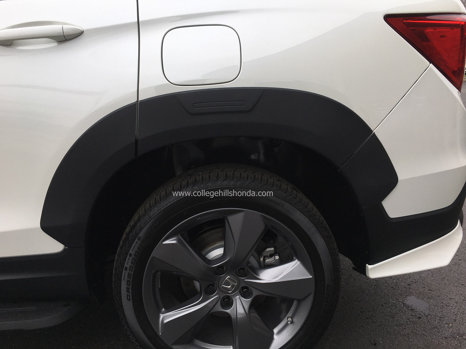 Adds an aggressive look to the Pilot while providing additional protection to the vehicle's body work. NOTE: Cannot be installed together with splash guards. Due to package size College Hills Honda offers this item for pick up at our location only.