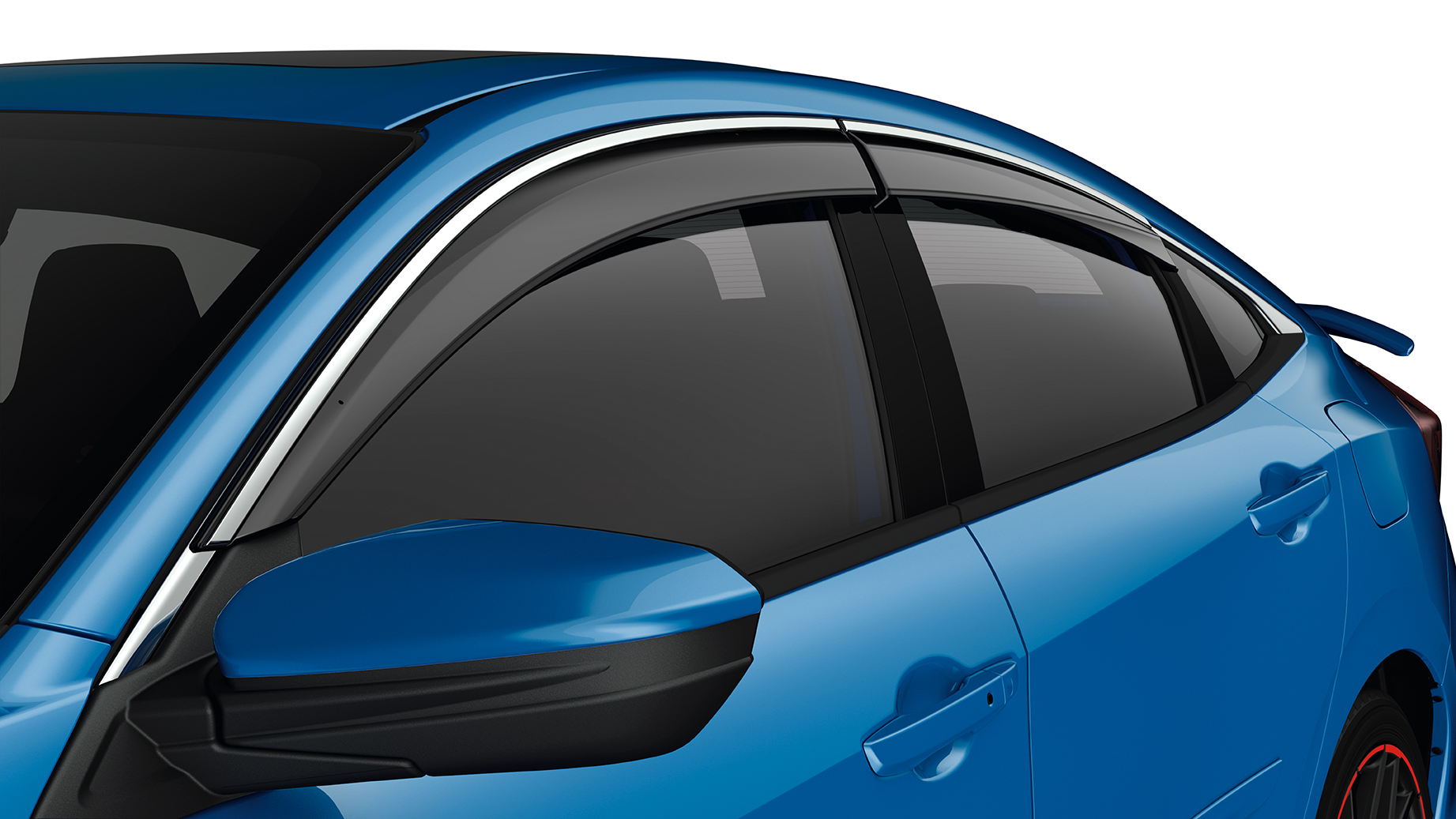 Visors provide fresh air, reduce heat build-up, minimize window fogging, cut down on glare, and help keep the rain out. Custom designed for the Honda Civic. Ships at a higher rate due to package dimensions.
