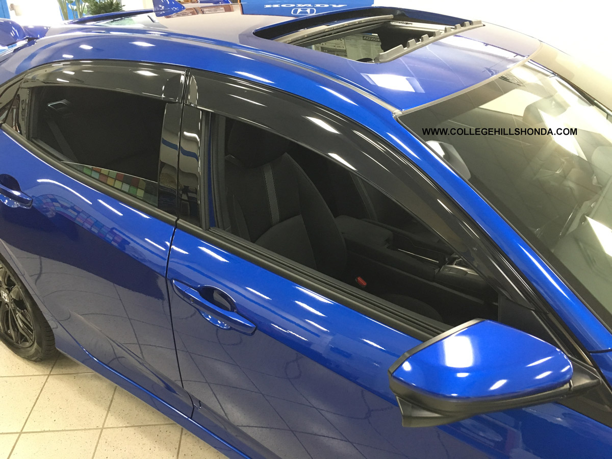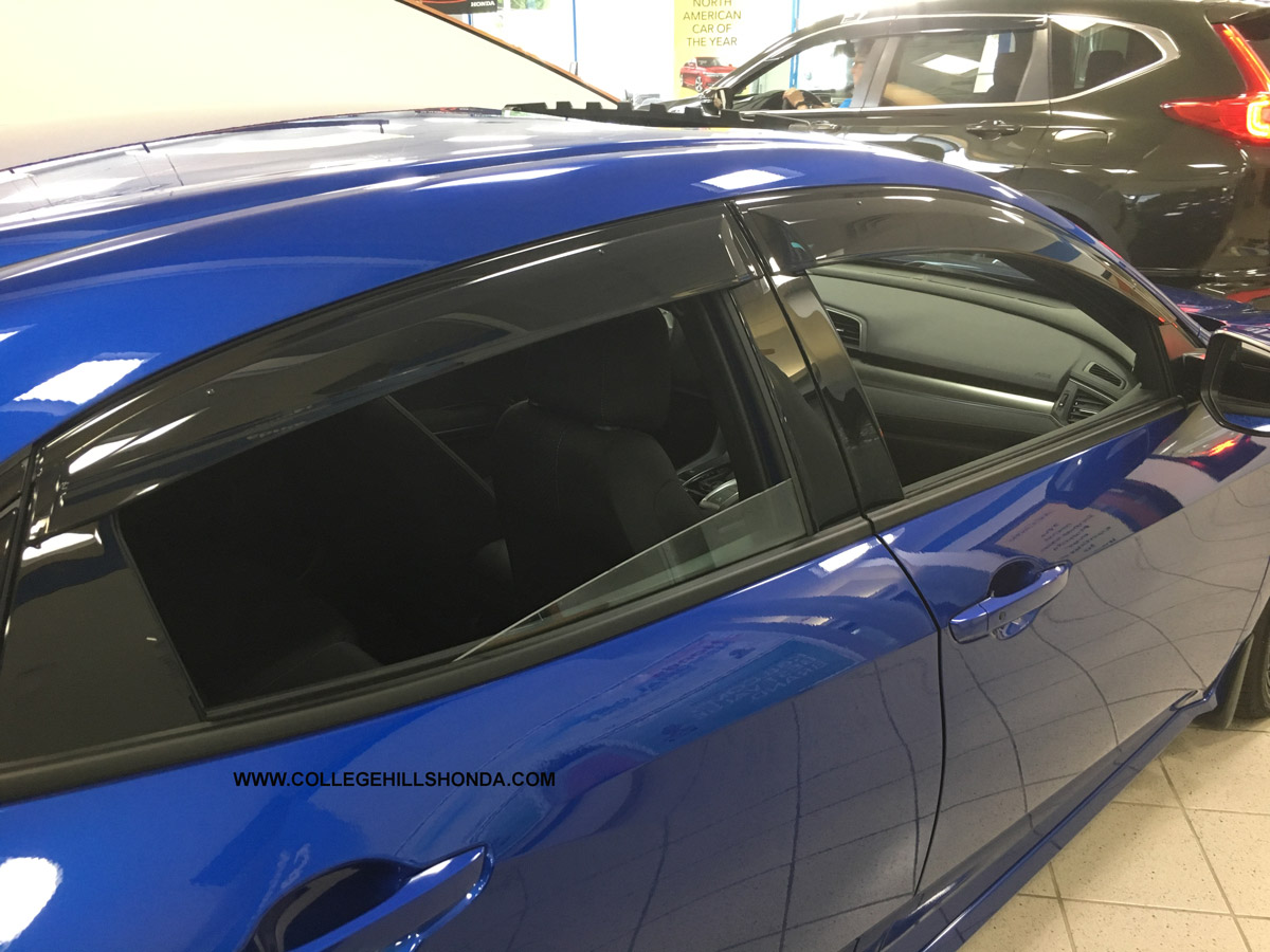 Visors provide fresh air, reduce heat build-up, minimize window fogging, cut down on glare, and help keep the rain out. Designed specifically for the Sport, Sport Touring and Type R Hatchback. Ships at a higher rate due to package dimensions.