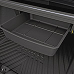 Designed to be easily reached and removed, this conveniently located drawer pulls out for additional storage. Smooth operating brackets with locking system keeps the drawer in place. Mounted above the cargo compartment for convenient cargo storage. Maximum capacity 11 pounds.