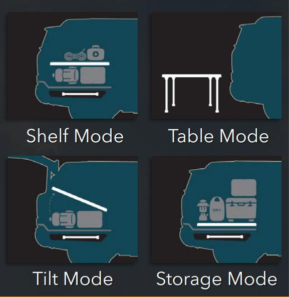 NOTE: DUE TO PRODUCT SIZE, THIS ITEM IS AVAILABLE FOR PICK UP AT COLLEGE HILLS HONDA ONLY. This convenient and space-saving 3-in-1 shelf supports light weight items, provides cover to keep personal items private, or sets up as a table with the included tubular legs. Supports up to 44 lbs. Features a rubberized, anti-slip surface for enhanced durability and stability.